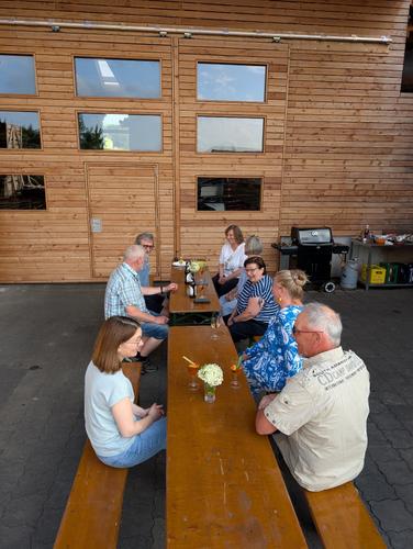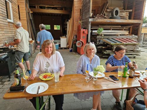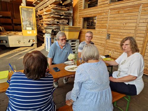 Unser HGV-Treff fand Anfang Juli in der Zimmerei Leibold statt. Wir bekamen eine interessante Führung durch die Werkstatt. Danach gingen die Gespräche unter anderem stark in Richtung Dachsanierung und Bauvorschriften. Es wurde auf dem Firmengelände gegrillt und die mitgebrachten Köstlichkeiten verzehrt. Bis spät am Abend saß man in gemütlicher Runde zusammen. Wir sagen Jörg und Sibylle Leibold ein herzliches Dankeschön für die Organisation und das Ausrichten des HGV-Treffs in ihrer Werkstatt.